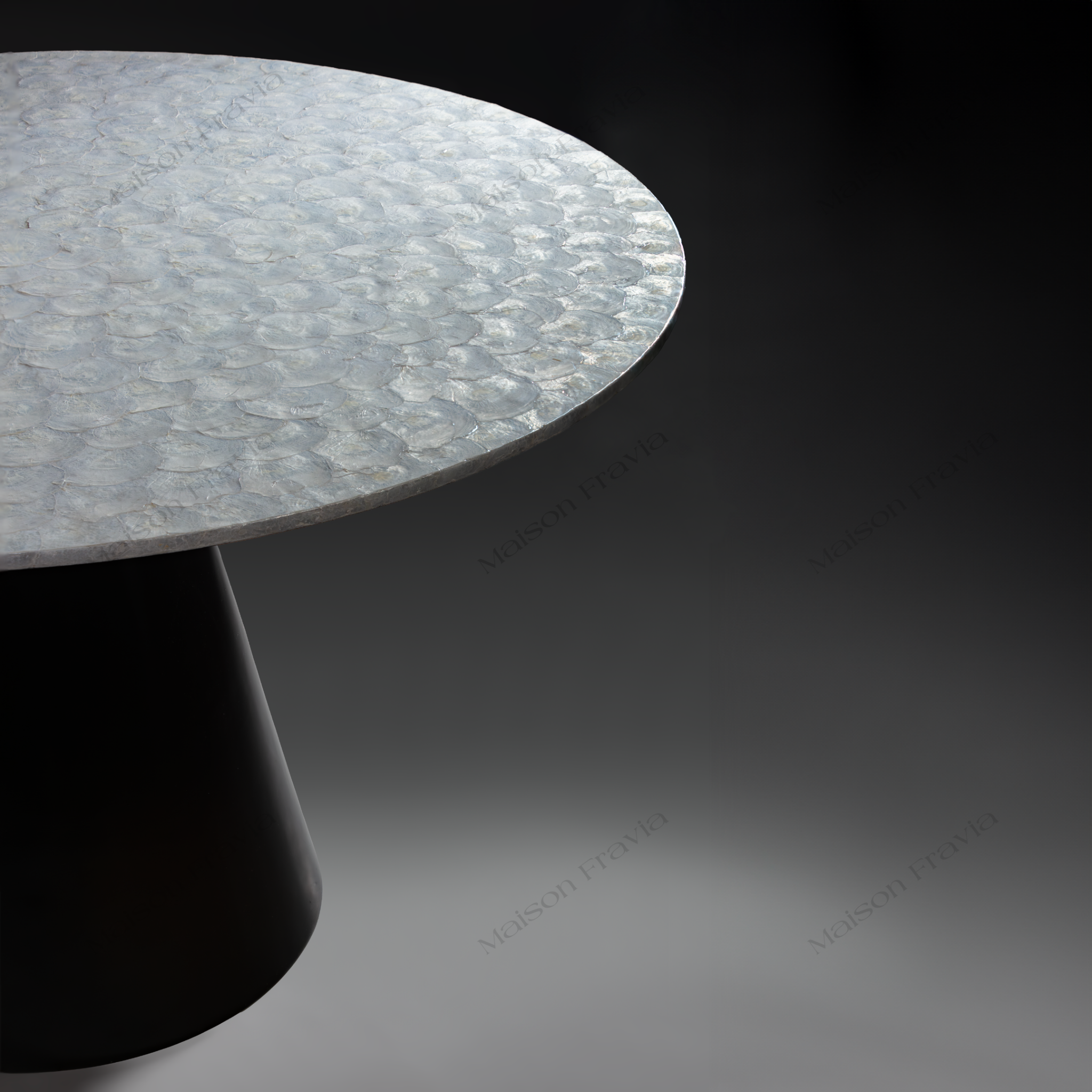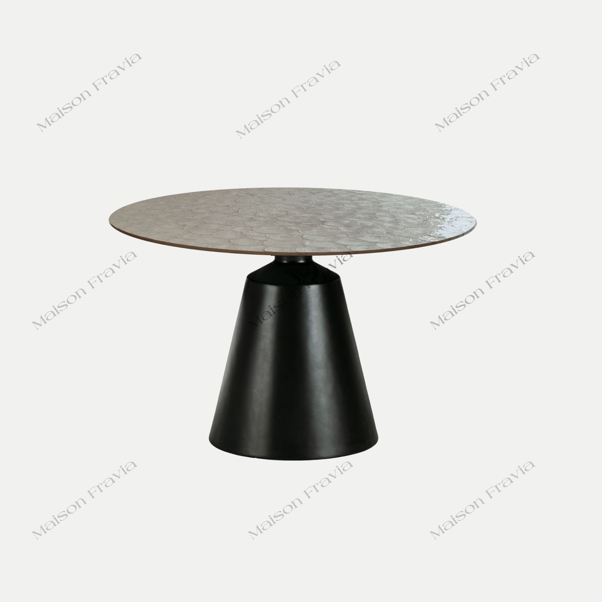 Bàn ăn khảm trai được sử dụng chất liệu khảm trai thủ công tinh tế cho mặt bàn - chất liệu best seller nhà Fravia. Mặt có đường kính 800mm, 1000mm và 1200mm cho quý khách lựa chọn đảm bảo khoảng cách rộng rãi cho gia đình 4-8 thành viên. Chân bàn được làm từ chất liệu fiberglass cực chắc chắn và an toàn với chiều cao tiêu chuẩn.