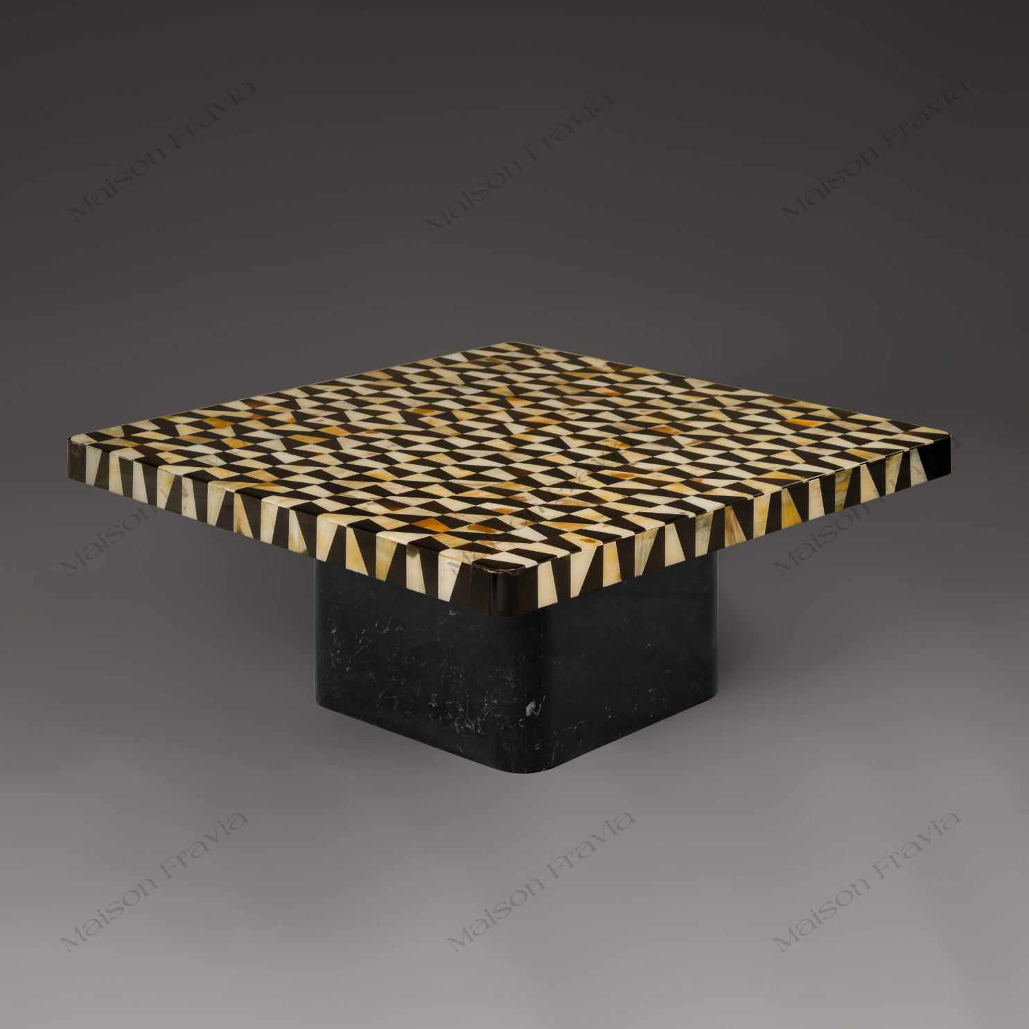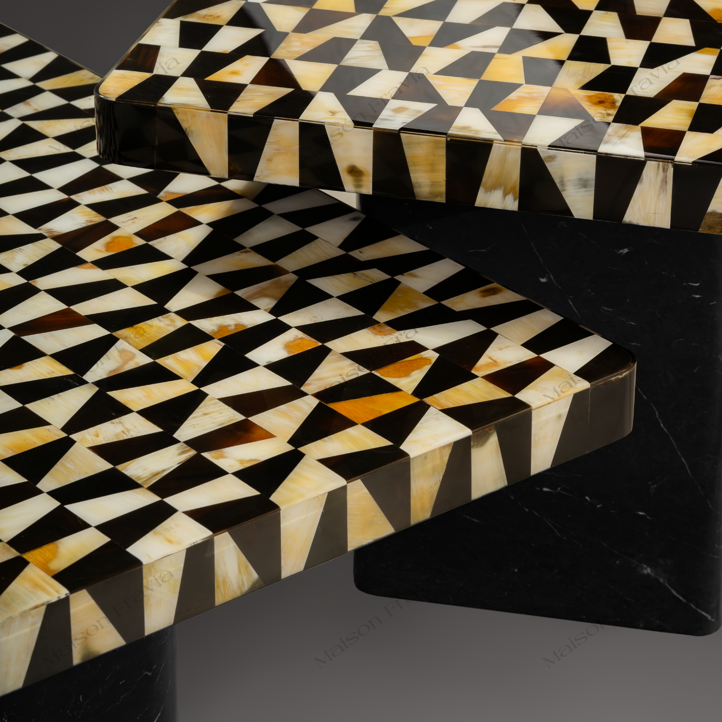 Bàn trà LUXXY HORN TEA TABLE đầu tiên thuộc Bộ Sưu Tập Cẩn Sừng mới với chất liệu mặt bàn được sử dụng từ sừng boChâu Phi tựa như một tác phẩm nghệ thuật độc đáo, kết hợp tinh tế giữa vật liệu tự nhiên và sự sáng tạo của con người.