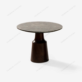 Cạnh bàn được vạt mỏng, tạo cảm giác thanh thoát và hiện đại. Chân trụ gỗ thịt được sử dụng gỗ me tây với vân đa dạng, vừa là điểm tựa vững chắc vừa là điểm nhấn cho thiết kế thêm nổi bật.