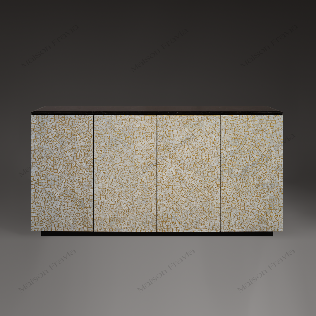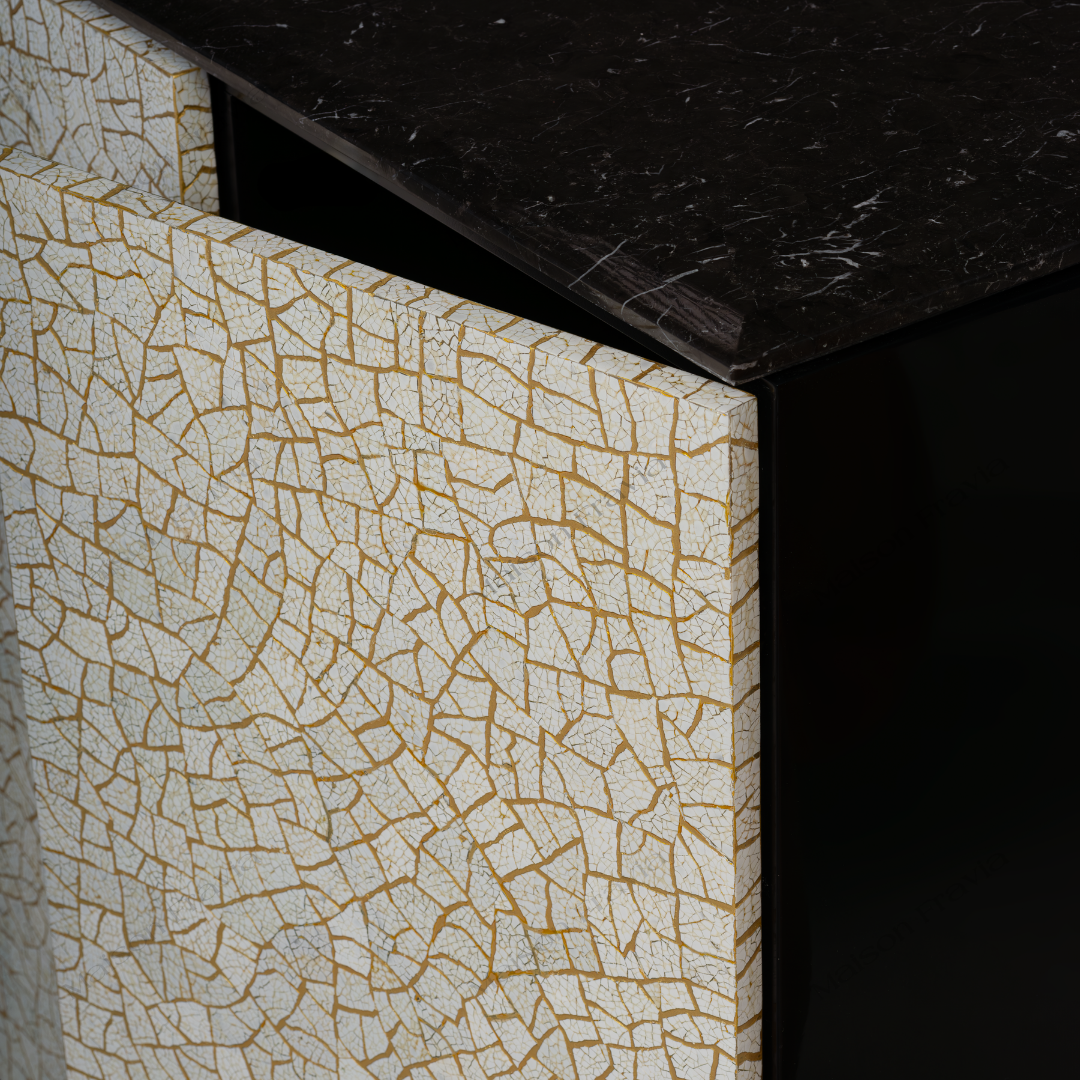 Ngôn ngữ thiết kế của bộ sưu tập này khéo léo kết hợp nhiều chất liệu khác nhau với các kỹ thuật truyền thống như dát vàng lá, khảm vỏ trứng và khảm xà cừ, được ứng dụng vào các sản phẩm nội thất mang hơi hướng đương đại. Mỗi sản phẩm không chỉ được tạo ra để tôn lên vẻ đẹp của không gian sống mà còn phản ánh sự tinh tế và giàu có của nghề thủ công truyền thống.