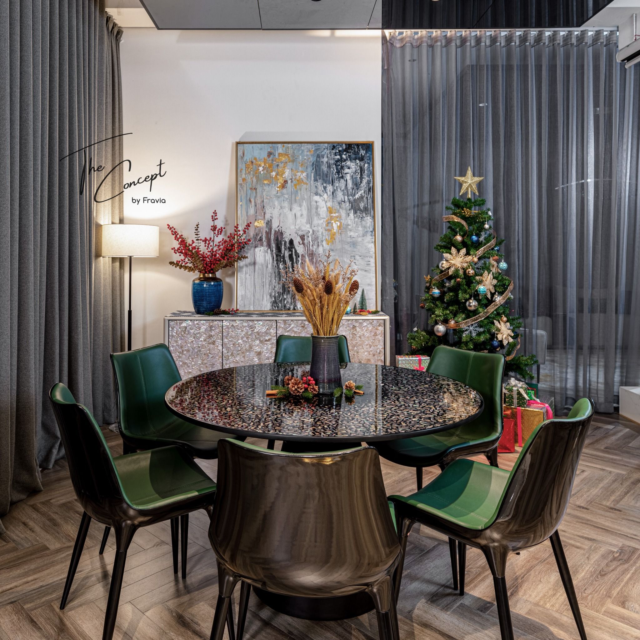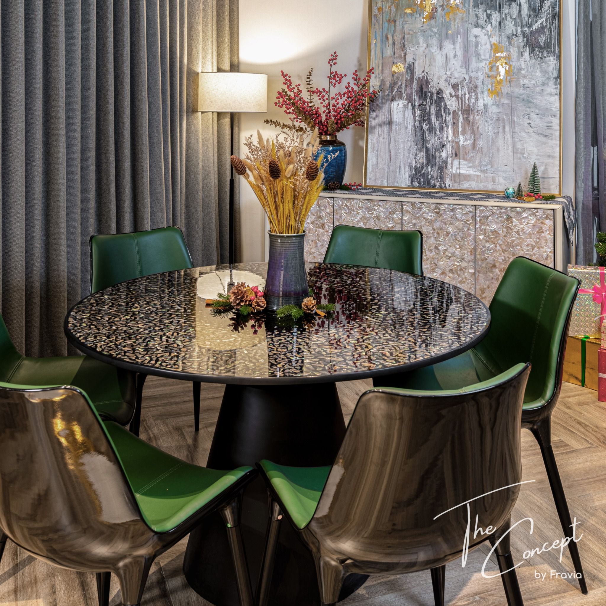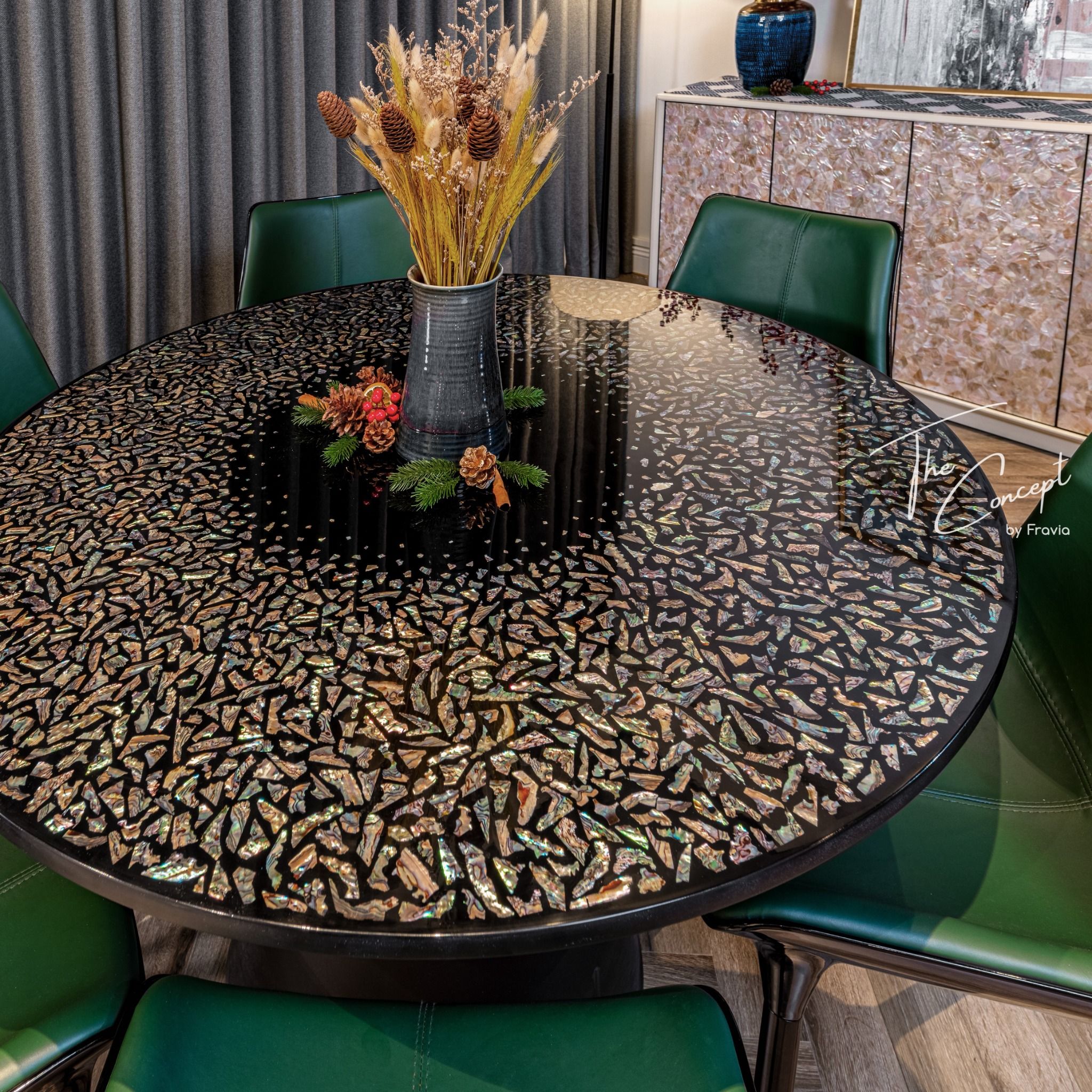 When Fravia released a series of mosaic lacquer dining tables - Asian Eyes resembling cat’s eye, it will be an impressive and shining point for the kitchen. It has a 120cm diameter tabletop, so it’s suitable for 6-8 members family. Besides, you can choose some chair forms to suit your living space at The Concept.